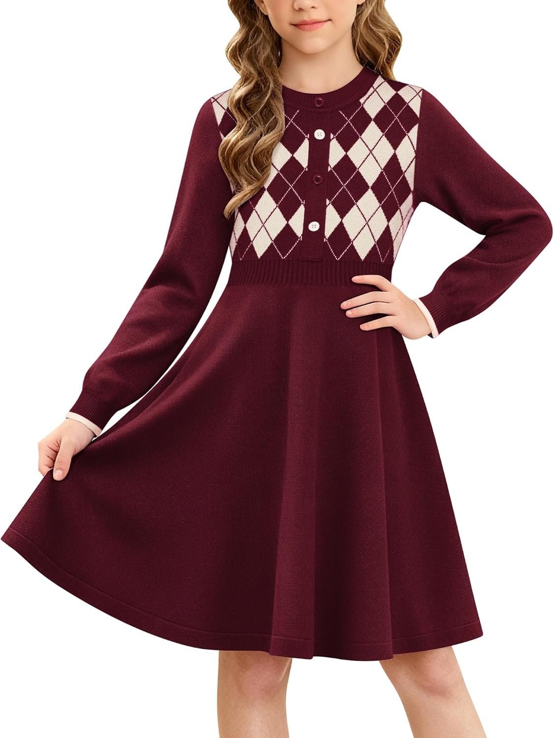 - Chic A-Line Design & Classic Argyle Details: Features a flattering A-line silhouette with timeless argyle diamond patternson top, rounded collar, and delicate buttons- perfect for creating that sweet, preppy look your little girl loves.