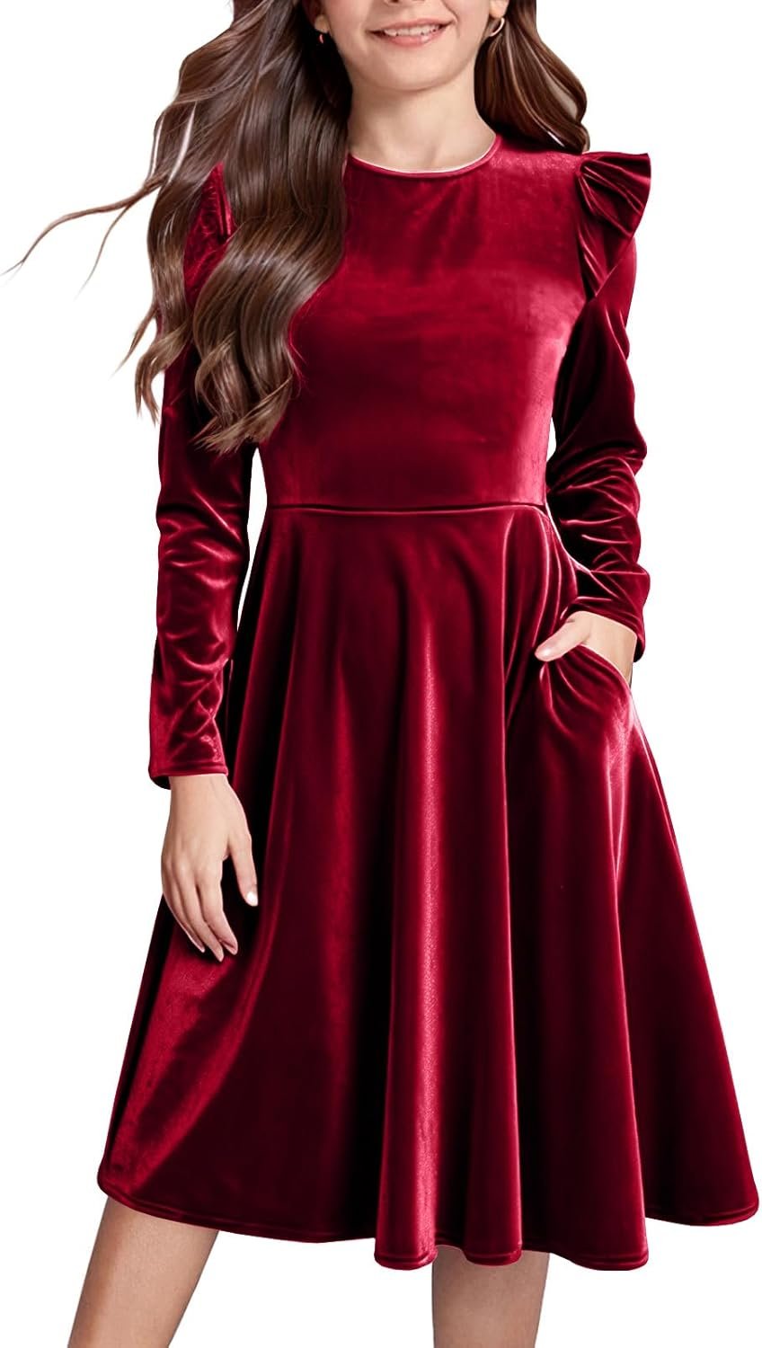 - Features: Soft breathable fabric, Doubled side pockets, light weight, solid color, round neck, dress for children and girls, cute hem. This Christmas dress for girls 5-14 is the nice choice for your cute girls.