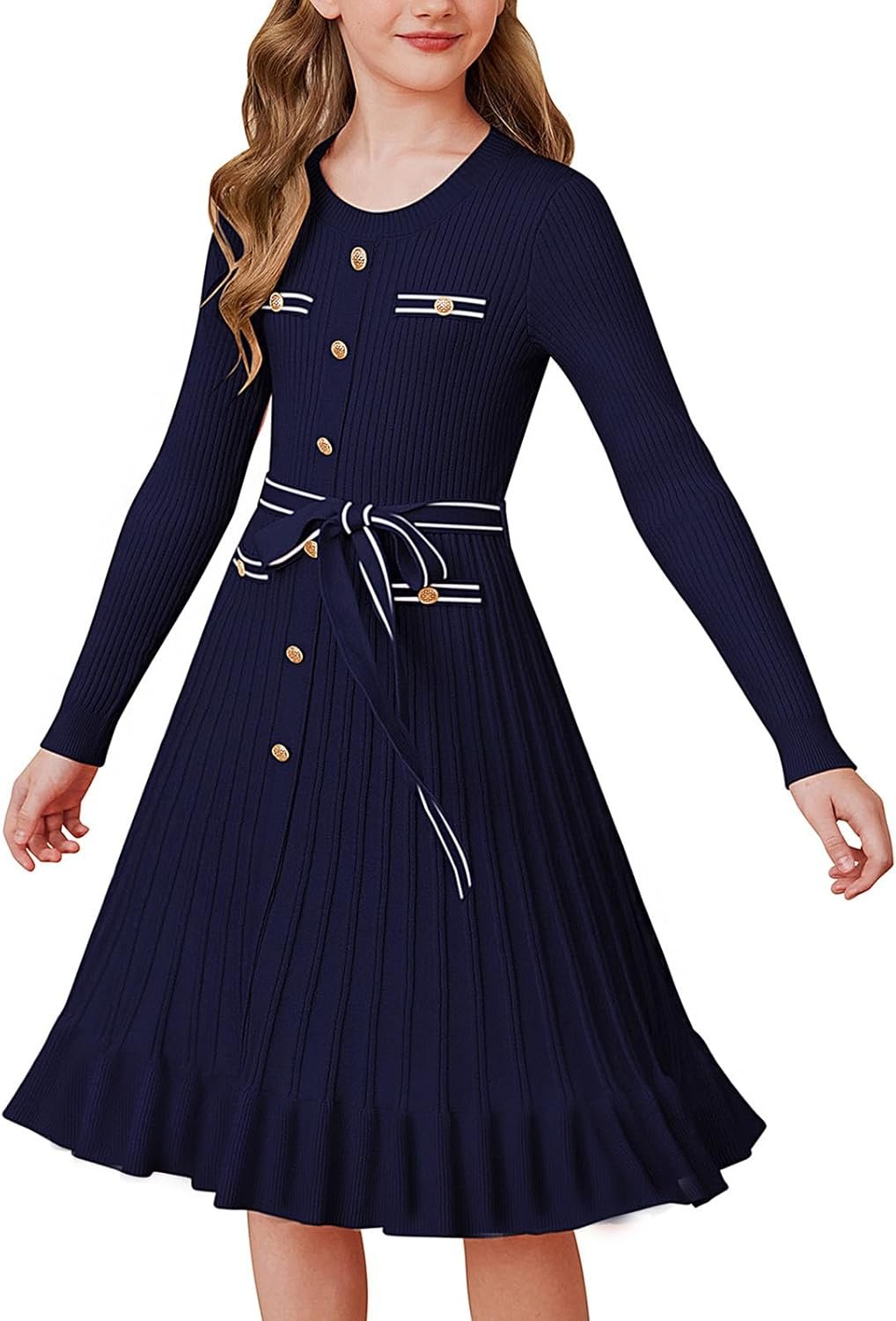 - Stylish Design For Girls: This long sleeve sweater dress features decorative buttons, adjustable belt, and a flattering A-Line silhouette adds fashionable flair for school, holiday gatherings, party, Christmas or casual outings—making it a versatile addition to any tween girl’s fall and winter wardrobe