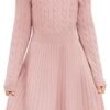 • [Distinctive Design] Featuring a beautifully cable-knitted front and a ribbed-knitted back, this long sleeve dress stands out with its unique long sleeves and crew neck design. The removable matched belt and the hips-wrapped silhouette further enhance its stylish appeal, making it a versatile choice for various occasions, including back to school and holiday celebrations.