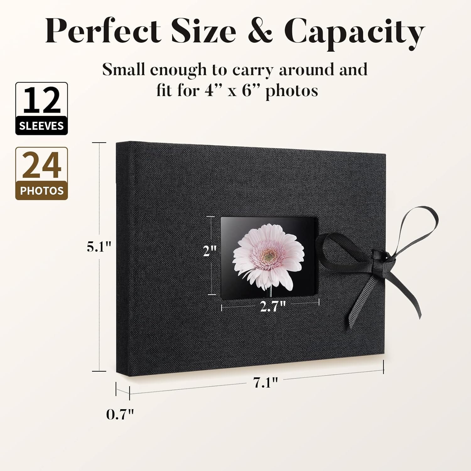 - Portable Size & Capacity: Dimensions: 9.5″(h) x 9.5″(l) x 1.70″(w), small enough to fit in your pocket and light enough to carry around. Come with 12 pocket pages to hold 24 horizontal 4” x 6” photos totally.