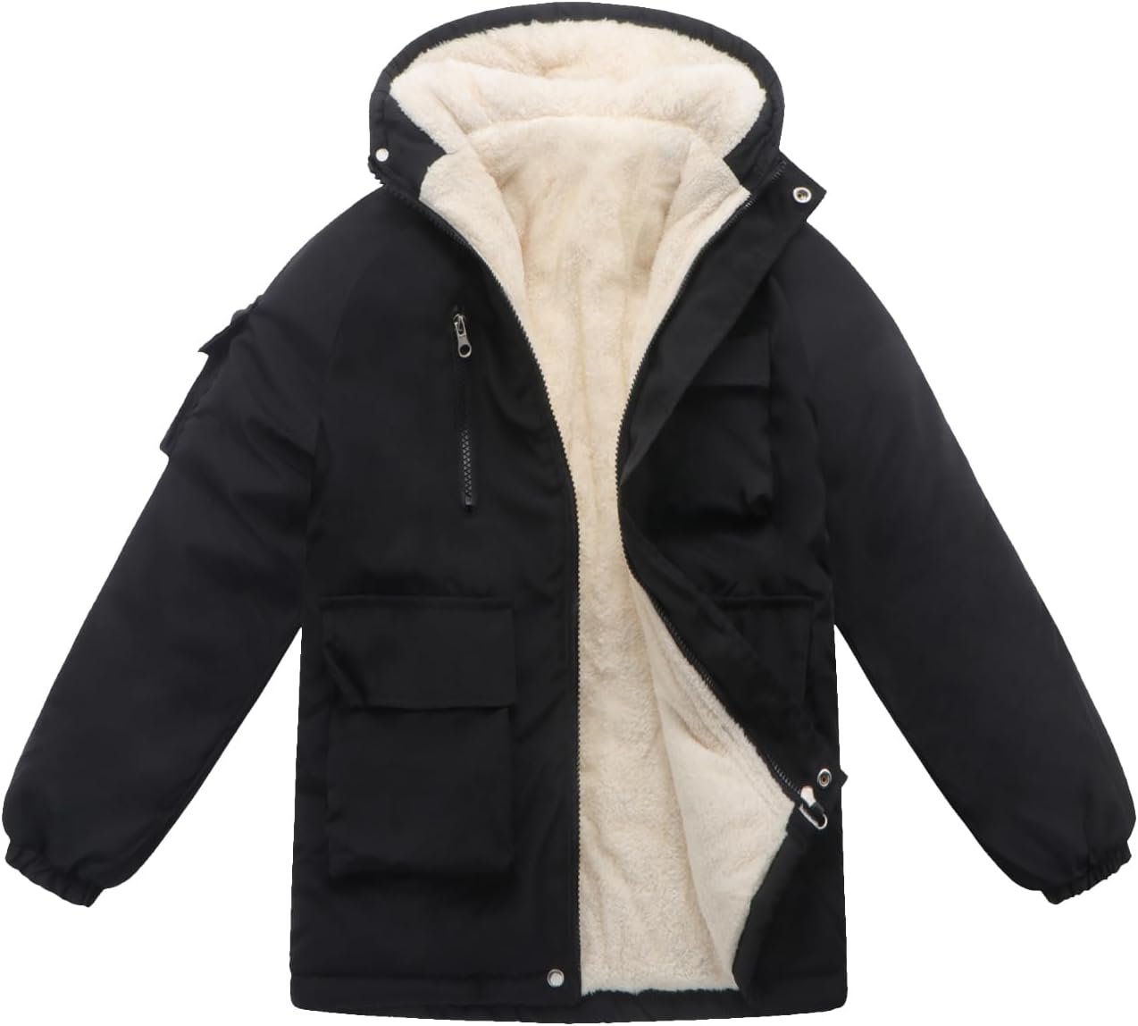 - Size: winter boys padded snow fleece-lined coats is suit for 4t 5 6 7 8 9 10 11 12 13 years old. Black puffer jackets have black and khaki color. Please make sure your kids size before you purchasing clothes for comfort and warmth.