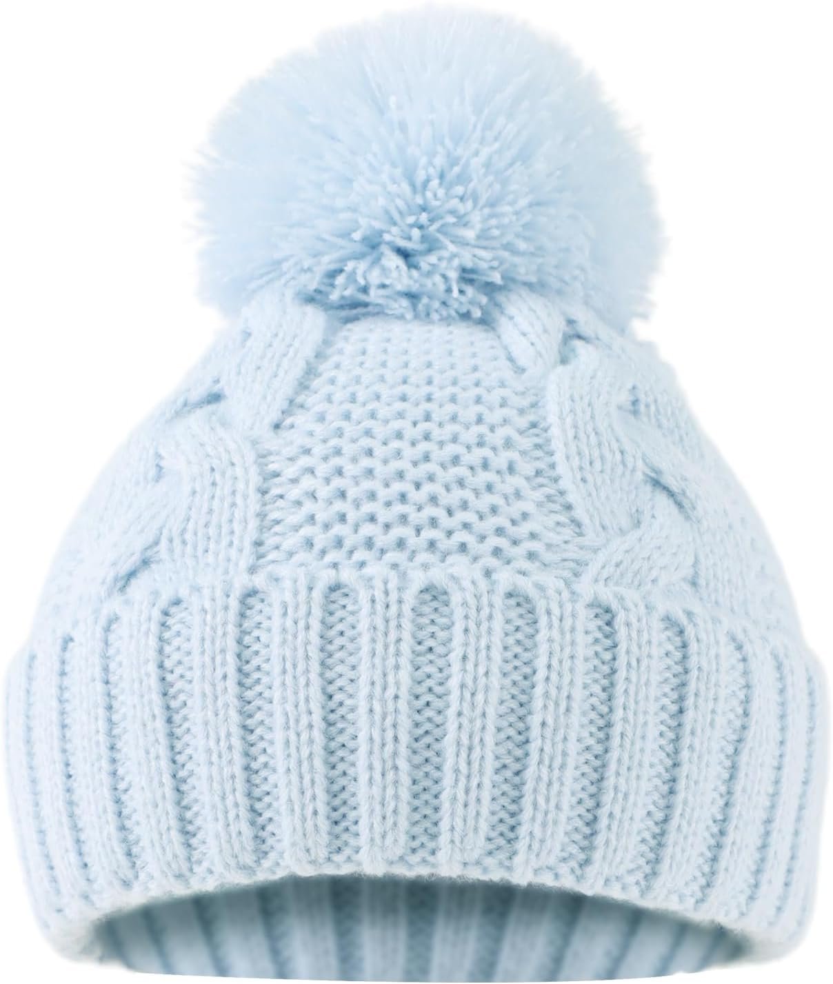 - [POMPOM DESIGN]The girls boys winter hat with a cute pom pom. Beanie hat with pom pom will look cuter. The acrylic pom is not removable.